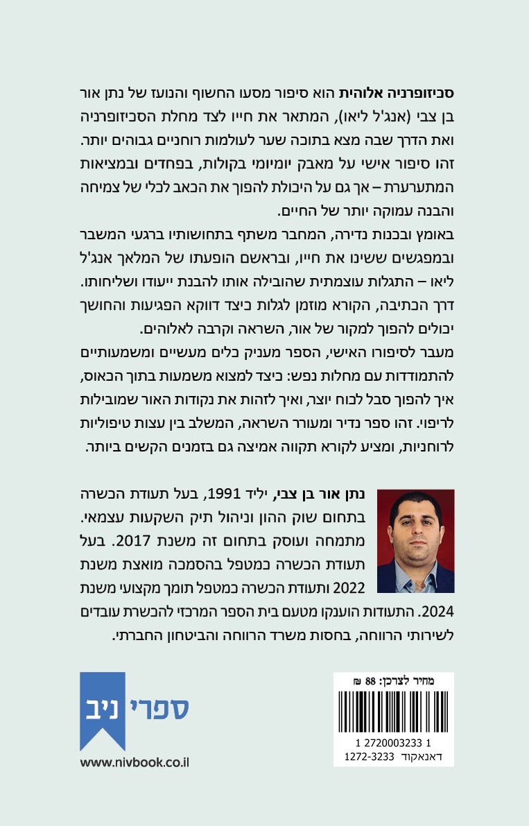 סכיזופרניה אלוהית הוא סיפור מסעו החשוף והנועז של נתן אור בן צבי (אנג'ל ליאו), המתאר את חייו לצד מחלת הסכיזופרניה ואת הדרך שבה מצא בתוכה שער לעולמות רוחניים גבוהים יותר. זהו סיפור אישי על מאבק יומיומי בקולות, בפחדים ובמציאות המתערערת – אך גם על היכולת להפוך את הכאב לכלי של צמיחה והבנה עמוקה יותר של החיים